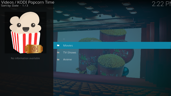 - Click Kodi Popcorn Time